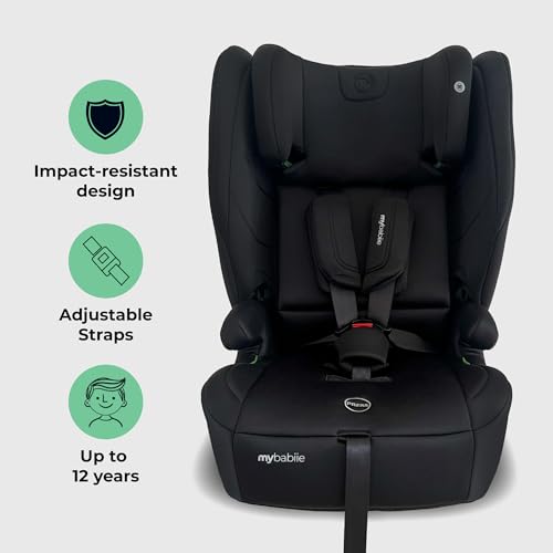 My Babiie MBCS80 Foldable Toddler to Booster R129 Child Car Seat – ISOFIX with Top Tether, Harness, 76-150cm (Approx. 9-36kg, 15 Months – 12 Years), i-Size, Group 1/2/3, Forward Facing – Black