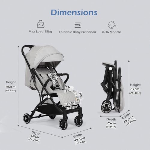 Be the first to review “Baby Stroller Pushchair, One-Hand Foldable Compact Travel Stroller Buggy with Rain Cover&Mosquito Net, Lightweight Baby Pram with 5-Point Harness, Adjustable Seat and Large Basket, 0-15KG, Light Grey”