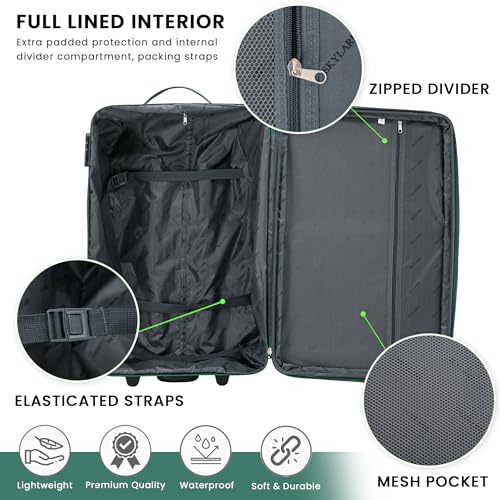 Skylark Description – 20″ Cabin Suitcase, 2 Wheels suitcase super lightweight luggage made with a soft shell, ideal for check in and carry-on luggage. Perfect flight bag, hand luggage, Cabin bag. This travel bag is everything you need to fulfil your travel needs. Travel with style and travel with Skylark.
