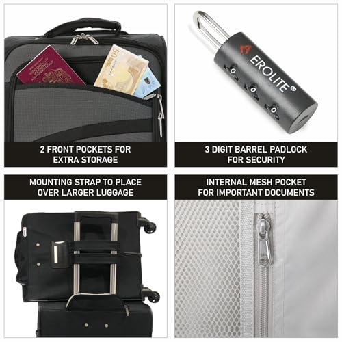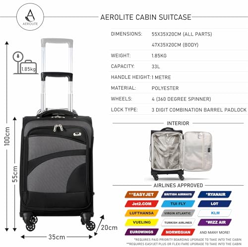 Aerolite Lightweight 4 Wheel Carry On Hand Cabin Luggage Suitcase Black Grey for British Airways Ryanair (Priority) easyJet (Plus/Flexi) & Many More