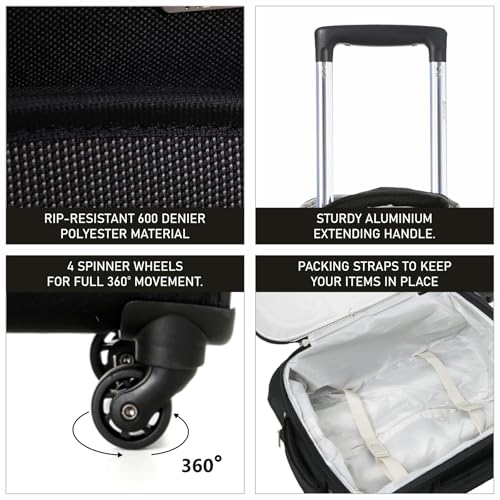 TAKE THE STRAIN OUT OF TRAVEL: Just getting to and from your final destination can be frustrating enough – your luggage shouldn’t add to that stress. This stylish cabin case features 4 spinner wheels, providing a full 360 degrees of manoeuvrability and allowing the suitcase to roll along comfortably alongside you, eliminating the strain of pushing or towing. With a height-adjustable retractable handle there’s no need to strain your back; and you can even place small bags and essentials on top.
