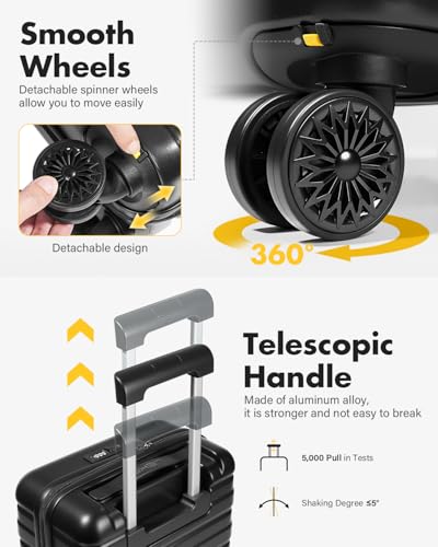 360° Spinner Wheels: The underseat carry on luggage can easily glide on different surfaces, and the 4 detachable spinner wheels allow for effortless movement in all directions, thus ensuring a hassle-free travel experience