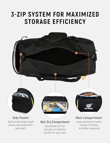 SKYSPER 30L Gym Duffel – Sports Bag Small with Wet Pocket for Sport, Travel, Fitness & Workout Men Women(Black)