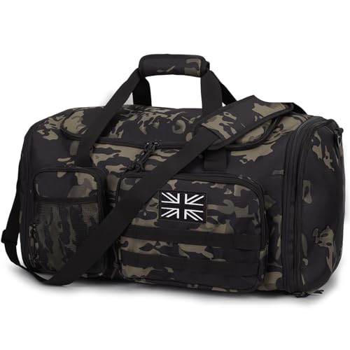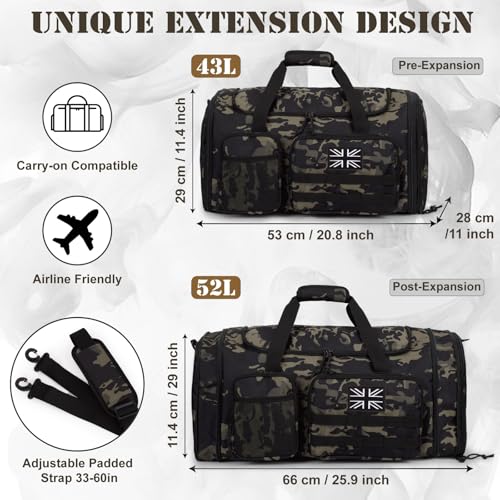 Tactical Duffle Bag for Travel Expandable 52L Large Duffle Bag for Men Gym Duffel with Wet Pocket Multi-Functional Carry On Bags Weekender Overnight Bag Organizer Duffel Bag for Travel
