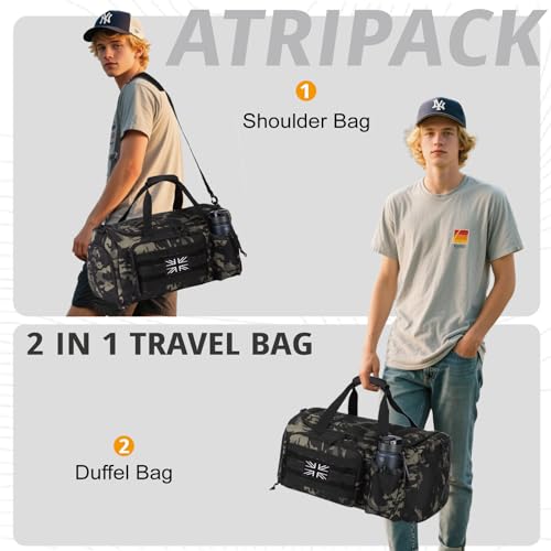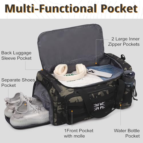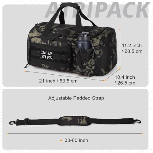 Tactical Gym Bag for Men, 40L Large Capacity Duffle Bags with Shoes Compartment, Sports Bag with Wet Compartment, Multi-Functional Weekend Bags Suitable for Travel, Camping,Hiking