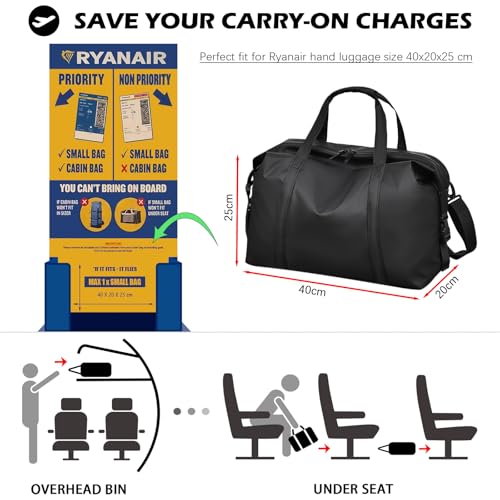 Travel Duffel for Ryanair Cabin Bag 40x20x25 PU Leather Carry on Bag with Shoulder Strap