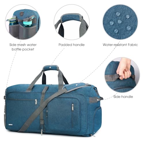 WANDF Travel Duffle Bag 65L Shoes Compartment Foldable Overnight Weekender Bag Carry On Bag for Men Women (Blue)