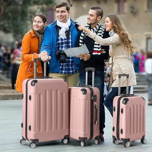 Karl home Lightweight Suitcase Set, 3-Piece ABS Hard Shell Luggage with 4 Spinner Wheels & Resilient Handle, Durable Cabin Suitcase for Travel, (Rose Gold, 20/24/28)