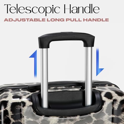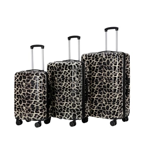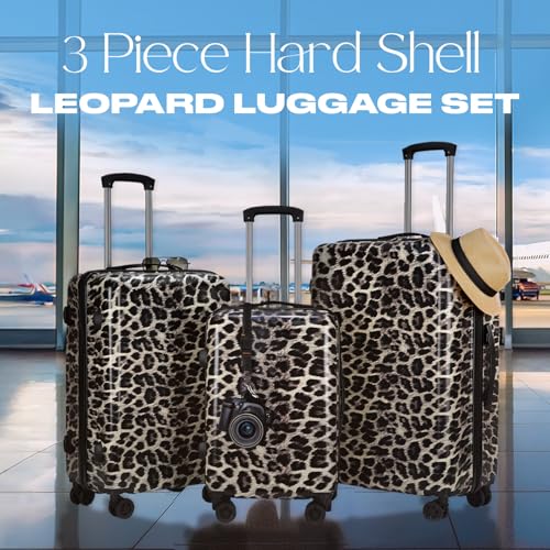 OHS Leopard Suitcase Set of 3, Hardshell Luggage Sets with 4 Wheels Lightweight Durable Adjustable Handles Easy to Carry – Cabin Luggage, Medium Suitcase, Large Suitcase