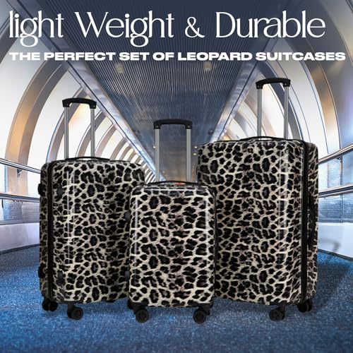 Leopard Print Suitcase Set: Hard shell suitcase set for all the family, ideal travel luggage for your next holiday getaway. Lightweight ABS material with protective corners. Travel case, medium suitcase and large suitcase durable enough for dents, bumps & scratches.