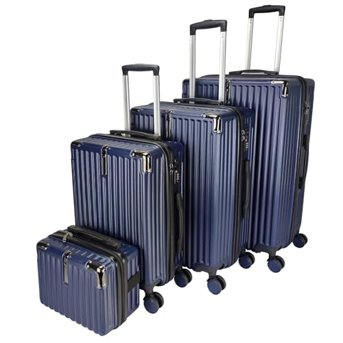 Suitcase Set – Cabin Suitcase – Large Medium Small Size Lightweight Suitcases 4 Wheel & Hard Shell – Hand Luggage Bag Flight Carry-ons Travel Cabin Bags (Navy Blue, Set of 4)