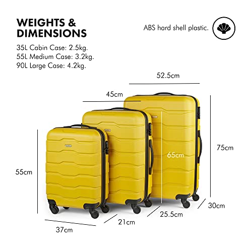 HARDSHELL SUITCASE SET: Made from lightweight yet durable ABS, the VonHaus 3 piece luggage set protects your belongings without adding extra weight. Finished in a vibrant mustard colourway, travel in style.