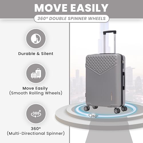 360°SPINNER WHEELS: Medium Suitcase with Multi-directional silent spinner wheels can move in any directions for easy mobility. They have been tested extensively on different road conditions with emphasis on endurance and damage resistance providing a smooth rolling comfort, making your travel around the world more user friendly.