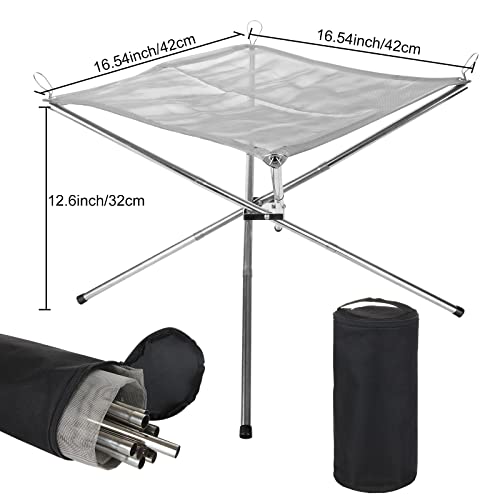 Durable Material: The portable fire pit for camping is constructed with upgraded heat-bearing stainless steel fine mesh and heavy-duty 304 stainless steel cross-structure, this outdoor fire pit portable offers strong stability and capability, not easy to corrosion, good foldable mesh fire pit for various outdoor activities.