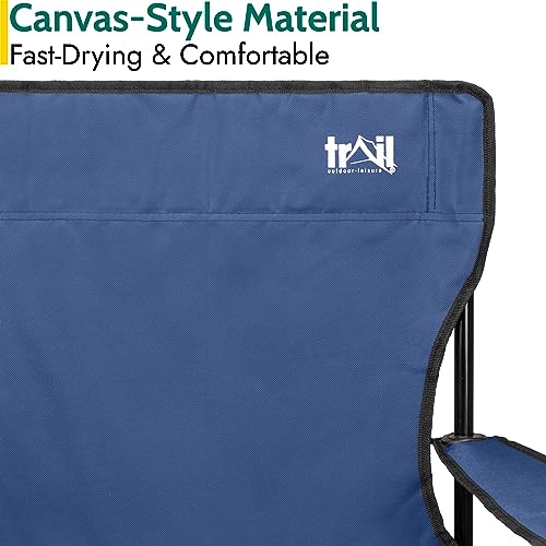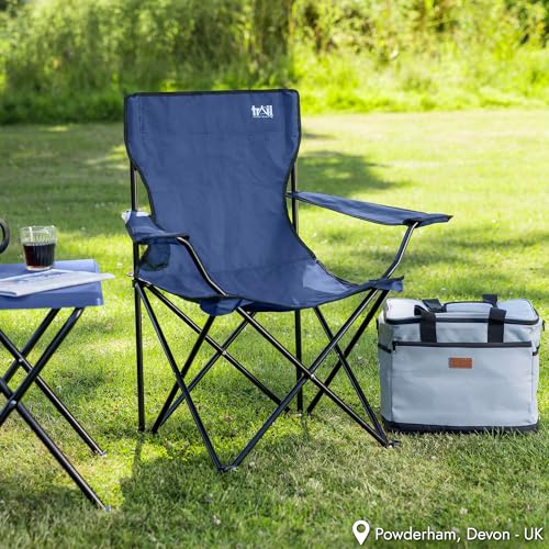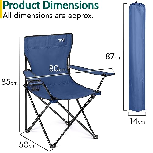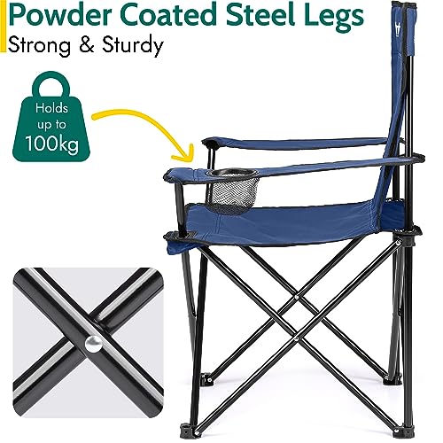 Trail Folding Camping Chair, Lightweight Outdoor Chair with Cup Holder Armrest, Heavy Duty Tubular Steel Frame, Fast-Drying Polyester, Carry Bag, 100kg Capacity (Blue)