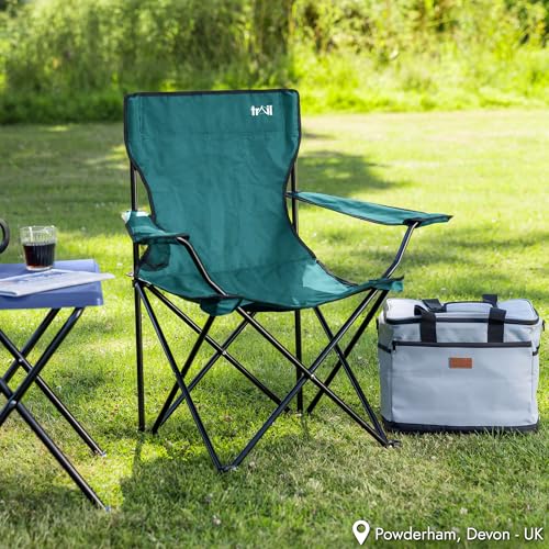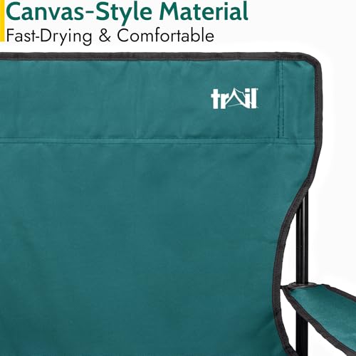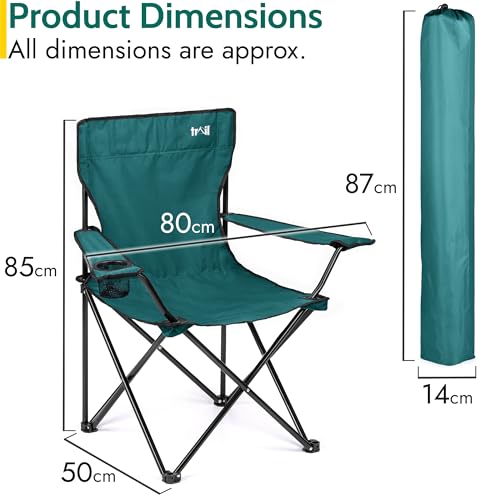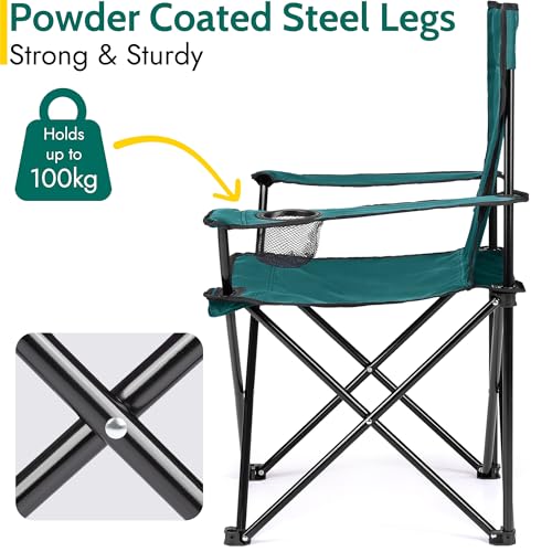 Trail Folding Camping Chair, Lightweight Outdoor Chair with Cup Holder Armrest, Heavy Duty Tubular Steel Frame, Fast-Drying Polyester, Carry Bag, 100kg Capacity (Teal)