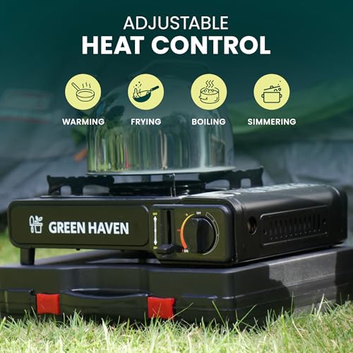 GREEN HAVEN Portable Camping Stove with Cary Case – Premium Camping Gas Stove, EN417 Compliant, Portable Gas Stove with Automatic Ignition & Heat Control, Black