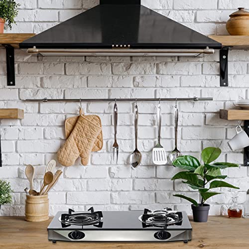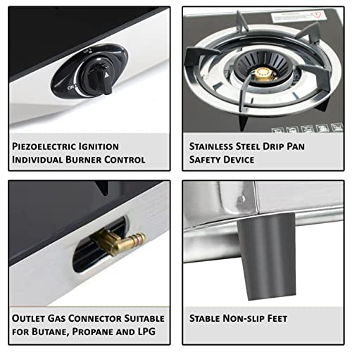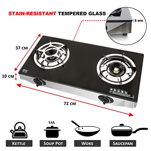 NJ NGB-S2 Indoor Gas Stove – 2 Burner Portable Gas Hob LPG Cooker Cooktop for Caravan Black Glass Freestanding Table Top for Home Kitchen Camping Garden Catering 6.8kW