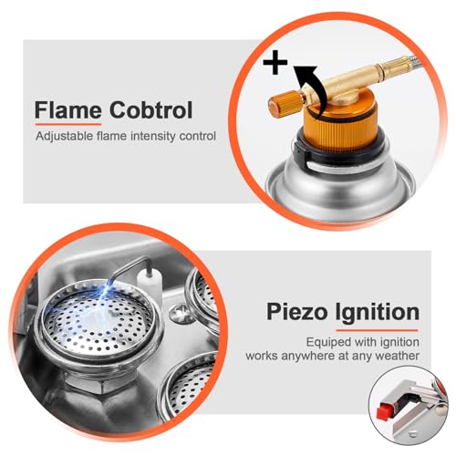 Premium Quality: The camping portable stove made of Aluminum alloy and stainless steel. The flame adjustment knob helps you adjust the flame size according to your needs, which make it more convenience and practicable.