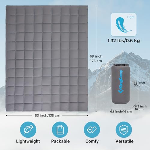 KingCamp Camping Blanket Lightweight Outdoor, Travel Blanket Multifunctional Warm, Sleeping Blankets Ultralight with Snap Button, Sleeping Quilt for Picnics Beach Camping Hiking Car Indoor