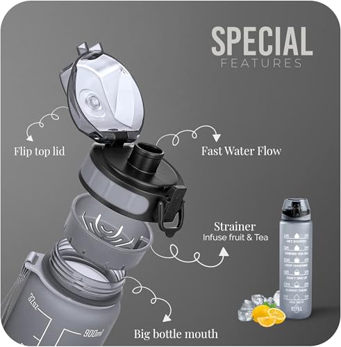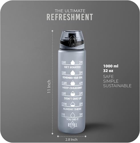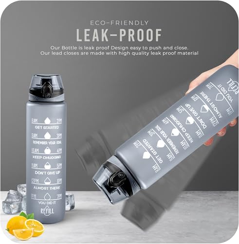 WATER BOTTLE HYDRATION ON-THE-GO : Stay Refreshed With A Lightweight & Handy Sports Water Bottle 1l. Time Marked Water Bottle Is Featuring A Effortless Sipping During Your Activities.