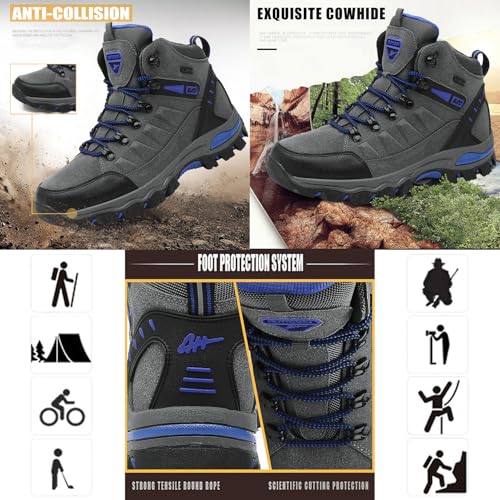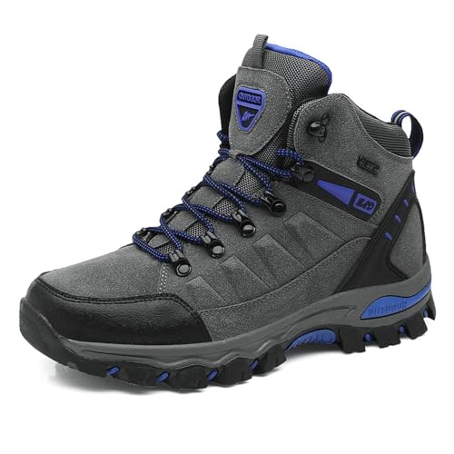 Hiking Boots Lace-up Waterproof Non-Slip Outdoor Sports Men Women Mountain Trekking Shoes for All Season Walking Travelling Backpacking Camping Biking, Grey-1, 6 UK