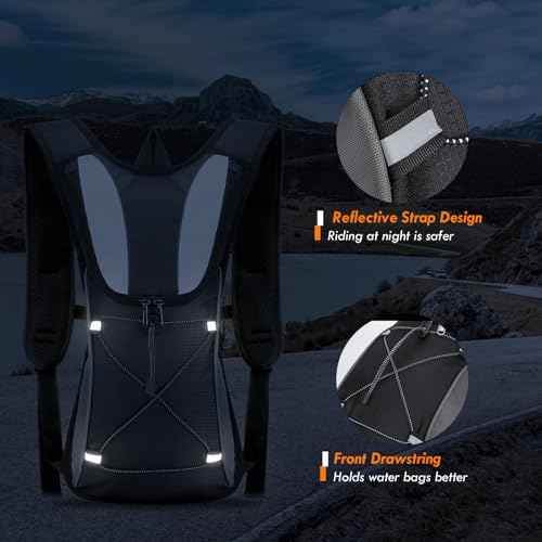 【Lightweight & Durable】The hydration vest bag pack adopts a compact design, it is made of lightweight, scratch-resistant nylon fabric, which makes it feel light and stable on your back, reduce the burden of moving forward. Therefore, the lightweight hydration backpack is the perfect choice for road cycling/running/hiking!