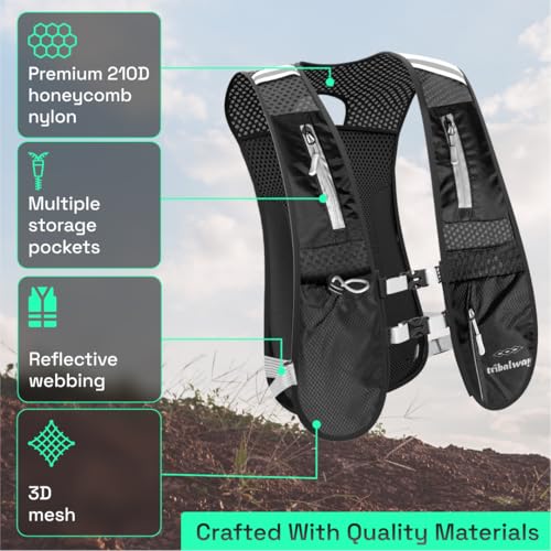 Lightweight Comfort Built for Distance: Take on long runs, hikes, and races with the Tribalway Running Vest, built for endurance and comfort. Made from durable 210D honeycomb nylon and breathable 3D mesh, it offers a lightweight, barely-there feel with long-lasting strength. Designed for men and women, this vest keeps you moving freely across roads, trails, and racecourses.