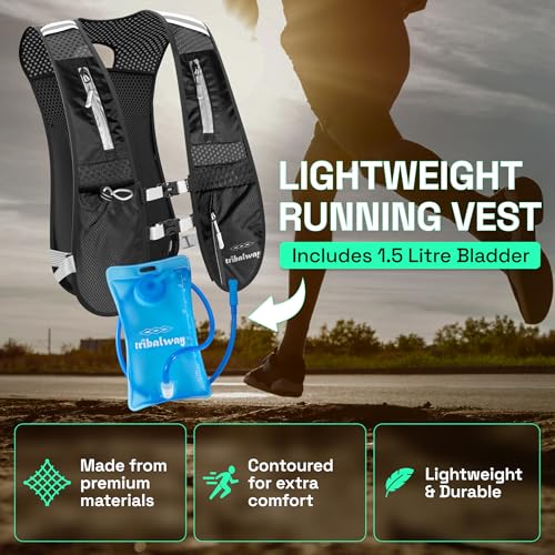 Running Vest – Hydration Vest for Men & Women, Breathable Running Backpack, Reflective Strips, Phone Holder, Water bottle Holder – Lightweight for Cycling & Hiking (Black – With Bladder)