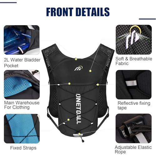 Multi Functional Storage: Our running backpack have a individual bladder warehouse for your 2L bladder, and a main warehouse for your clothes and towel. In addition, also has elastic pockets and zipper pockets on the front shoulder