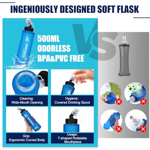 One-Hand Hydration: Our BPA-free 500ml soft flasks feature a leak-proof self-sealing valve that only opens when you bite – no spills, no mess