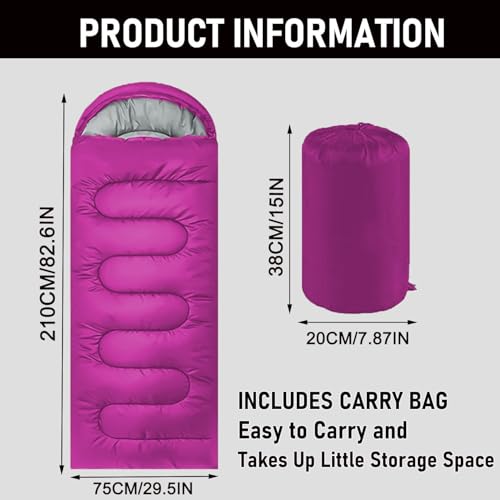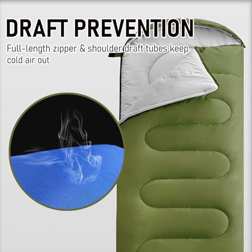 【Waterproof & Breathable & Warm】The ultra-strong, waterproof outer protective shell is made from our unique waterproof hex-tech design, double-layered with S-shape stitching, and 3D inner synthetic fiber fill for optimal warmth and insulation to protect you from the elements. You feel more comfortable when using these sleeping bags for adults