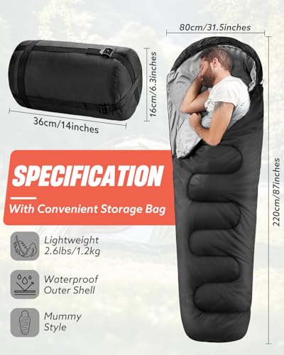 Sleeping Bags for Adults Ultralight 4 Season Single Person Warm Lightweight Sleeping Bag for Camping Lightweight Waterproof Indoor & Outdoor for Kids Teenagers Adults Hiking