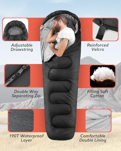 ENJOY WARM AND COZY SLEEPING: No matter where your adventure takes you, enjoy a restful sleep with this sleeping bag designed for both comfort and warmth. Its sleeping bags for adults design ensures optimal insulation, keeping you warm all night long. Whether you’re using it for camping sleeping bags, or at home, this sleeping bag promises a snug, cozy experience in any environment.