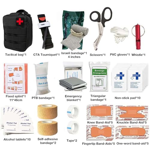 First Aid Kit, Emergency Survival Trauma Kit First Aid Bag First Aid Molle Pouch for Home Car Holiday & Workplace, Includes Bandages, Tourniquet, Shear and Essentials for Everyday Situations