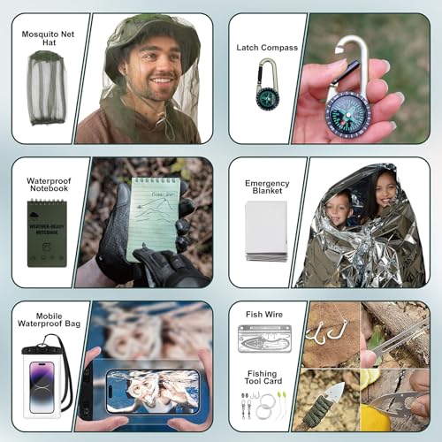 24-in-1 Essential Survival Kit: Packed with must-have camping and emergency tools, including a survival bracelet, compass, whistle, fishing gear, multifunctional spoon, and more. This all-in-one kit is built to support hiking, fishing, and wilderness adventures.