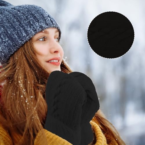 Mittens Women, Womens Adjustable Turnover Mittens,Ladies Thick Fleece Lined Insulated Warm Knitted Winter Thermal Mittens Fingerless