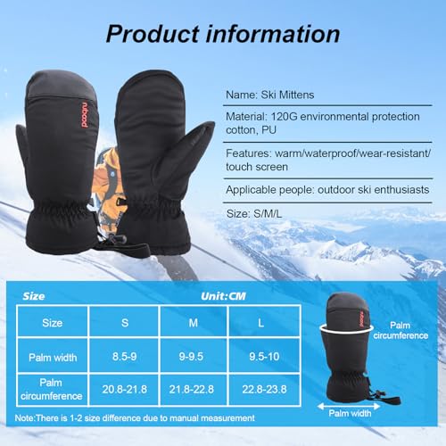 Touch Screen Non-Slip: The ski mittens are made of non-slip wear-resistant PU leather on the full palm, ensuring a strong hand grip when skiing or daily use. The gloves are equipped with high sensitivity touch screen technology on the index finger and thumb, sensitive and long lasting touch screen, operate cell phones and other electronic devices at any time.