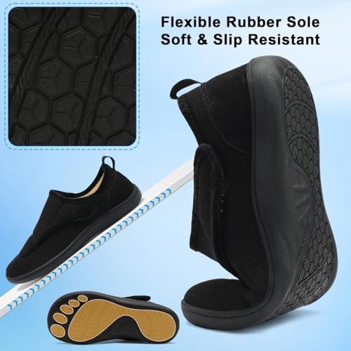 JOINFREE Men’s Slippers Wide Fit Adjustable Comfortable House Shoes with Back Heel, Zero-Drop Non-Slip Slippers for Swollen Feet, Sensitive Feet, Indoor Outdoor Walking