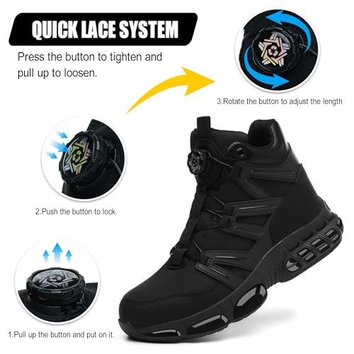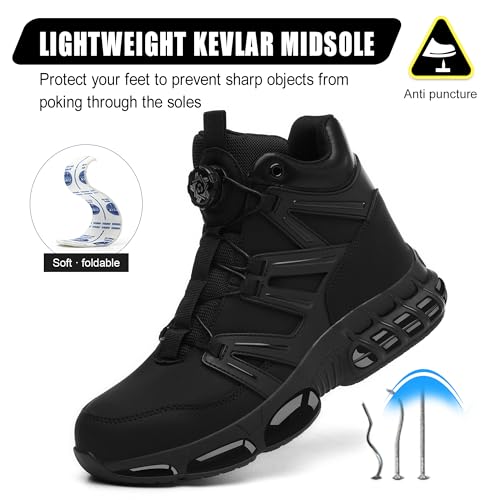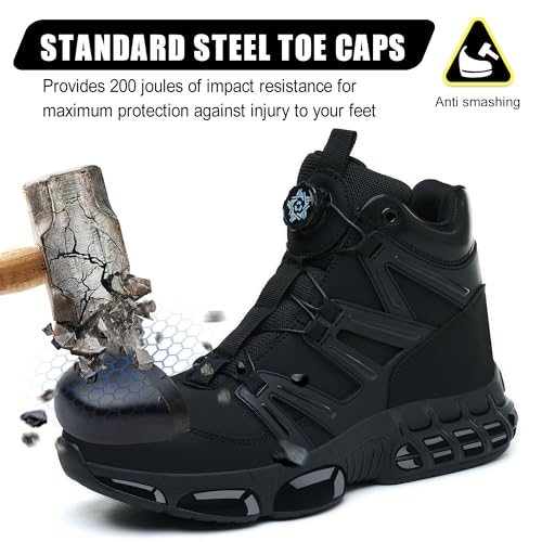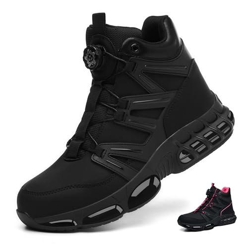 Safety Boots Men Women Steel Toe Cap Boots Lightweight Work Boots Air Cushion Safety Trainers with Swivel Buckle Shoelaces