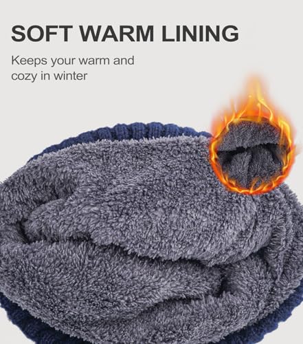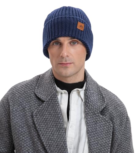 Beanie Hats for Men, Winter Hats with Thick Warm Fleece Lining, Thermal Knit Beanie Hat for Men & Women