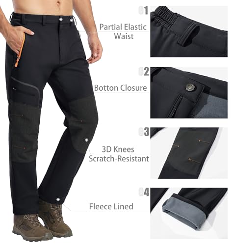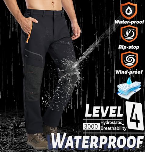 Cavva Men’s Waterproof Hiking Trousers Winter Fleece Work Softshell Trousers Outdoor Walking Ski Pants with Zip Pockets