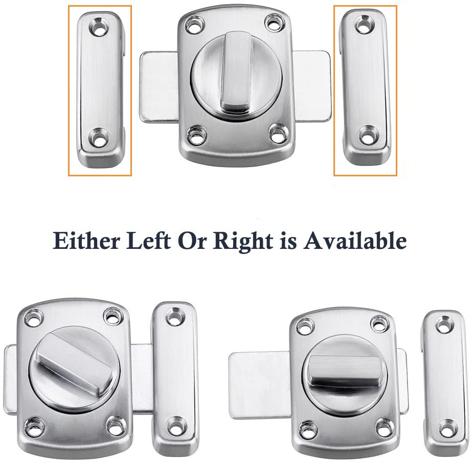 【Easy to Install】This slide bathroom door lock comes with screws to install, Can be install on left or right side, turned to activate mechanism, rotate to close.
