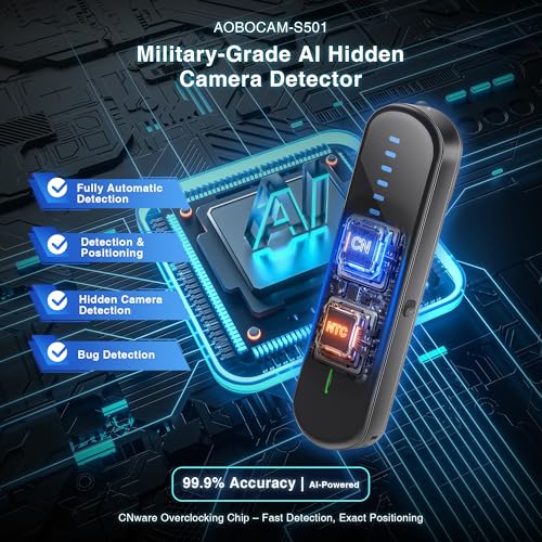 AOBOCAM Spy Hidden Camera Detector, GPS Tracker & Bug Detector, AI-Powered Anti-Spy Device, Portable RF Signal Scanner for Hotels, Travel, Home & Office& Car Security
