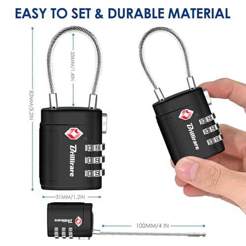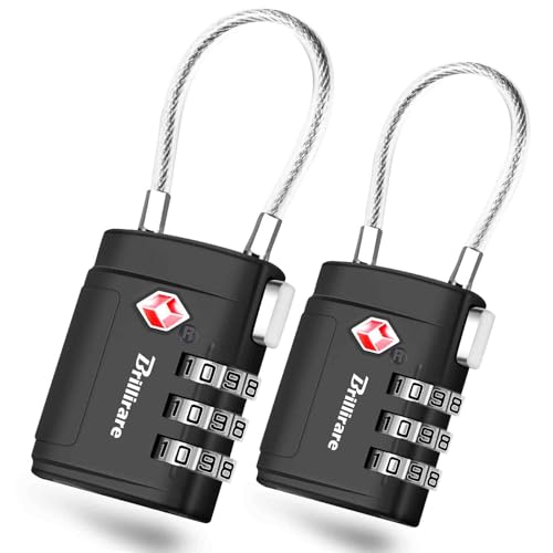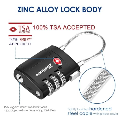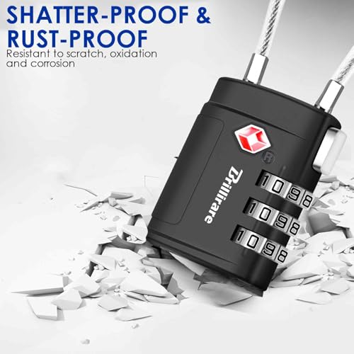 2 Pack TSA Approved Luggage Locks, Combination Travel Cable Suitcase Padlock with Alloy Body, Metal 3-Digit Waterproof Lock, TSA Accepted Outdoor Keyless Resettable Lock for Lockers, Bags, Gym-Black
