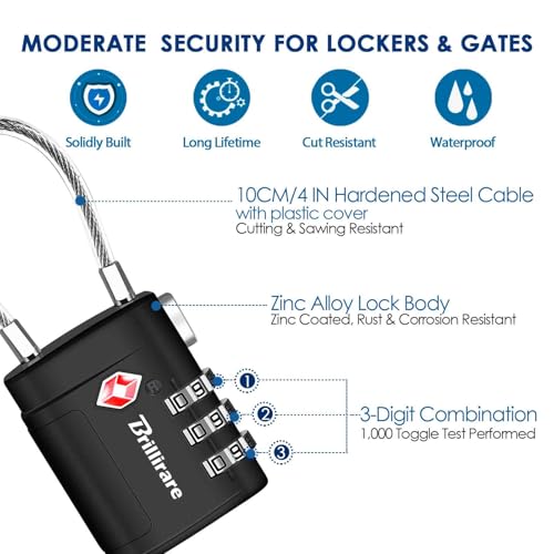 DURABLE MATERIAL: The waterproof lock has copper lock cylinder with heavy duty zinc alloy lock body & 4in/10cm long steel cable shackle with plastic cover, anti-sawing & anti-shearing. Adopts upgraded internal structure to make the lock harder to crack