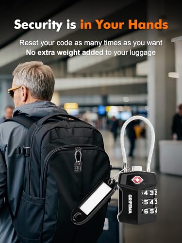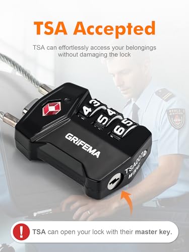 GRIFEMA 3-Digit TSA Approved Suitcase Locks, Secure Combination Padlocks with Flexible Steel Cable for Travel Luggage, Bags and Backpacks (1-Pack, GA1006)