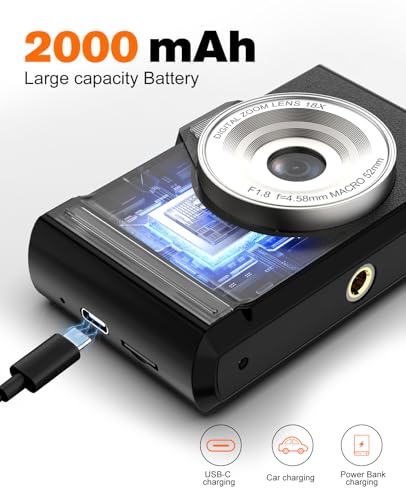 Digital Camera 4K 64MP Compact Portable Photo Camera,18X Digital Zoom Autofocus | Anti-Shake,2.8″ IPS Screen with 32GB SD Card & OTG Adapter,Vlogging Camera for Kids Teens Beginners Students