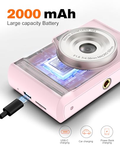 Digital Camera 4K 64MP Compact Portable Photo Camera,18X Digital Zoom Autofocus | Anti-Shake,2.8″ IPS Screen with 32GB SD Card & OTG Adapter,Vlogging Camera for Kids Teens Students Beginners