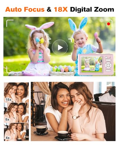 Suitable for Anybody Any Scene:You can use the digital camera to take photos and vlogs at birthday parties, picnic parties, concerts, graduations and travel. No photography skills are required for this digital camera, just press the shutter lightly, it’s a great camera for kids, students, adults, seniors and beginners, perfect as a christmas gift, birthday gift, holiday gift!